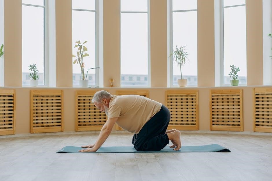 The Cat-Cow stretch is a gentle‚ flowing movement that enhances spinal mobility and can be beneficial for those with lumbar spinal stenosis. Begin on your hands and knees‚ ensuring your hands are shoulder-width apart and knees are hip-width apart.