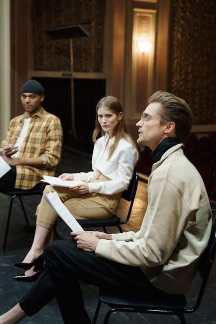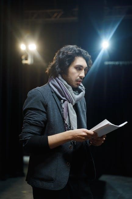 Teaching Romeo and Juliet involves engaging students with its timeless themes and complex characters. Educators often use the play script PDF to facilitate discussions on love, conflict, and fate. Activities like scene readings, character analysis, and thematic debates encourage critical thinking. Teachers may assign essays exploring the roles of fate versus free will or the impact of the family feud. Group projects, such as modern adaptations or scene reenactments, help students connect with the material. The PDF format allows for easy access to annotated versions, guiding students through Shakespeare’s language and historical context. These strategies make the play relatable and meaningful for contemporary learners.